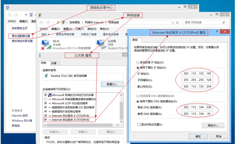 家属区网络IPv4接入采用了IP地址与MAC地址绑定接入端口的管理方式,入网用户须设置TCP/IPv4的属性信息,如下图: